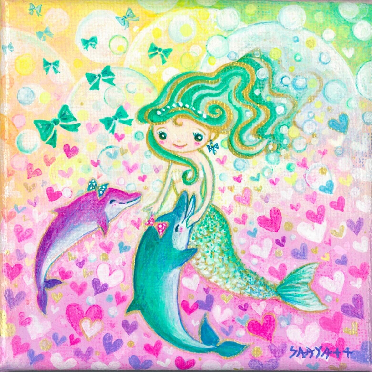 【原画:10㎝×10㎝】人魚さんと甘えん坊イルカ | STARRY ART☆SHOP